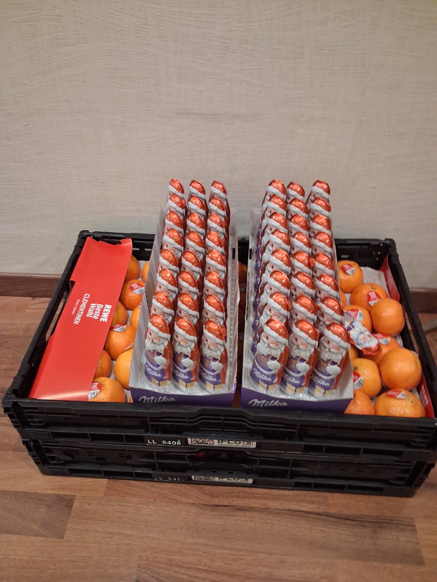 pünktlich zum heutigen Nikolaus-Tag haben wir gestern in allen Offenbacher Erasmus-Einrichtungen unsere frisch verpackten Nikolaus-Tütchen verteilt. Für die mehr als 500 Tütchen wurden von uns hierbei u.a. 98kg Äpfel und 55kg Clementinen verpackt. Für die Kinder in den Krabbelstuben wurden 120 Fruchtriegel (anstelle von Schokolade, Äpfel und Clementinen) verteilt.