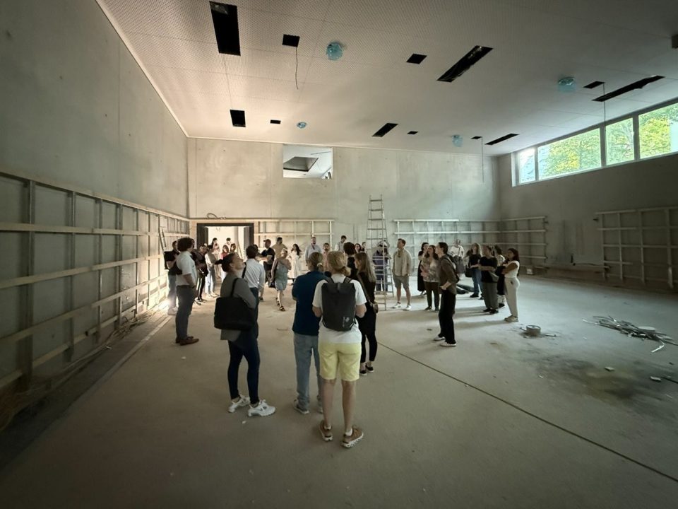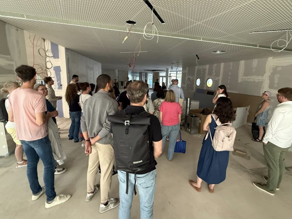 Sean Schneider, Geschäftsführer von Erasmus, führte uns durch das neue Schulgebäude, das voraussichtlich Ende 2025 eröffnet wird, Patrick Krauß, Schulleiter der neuen Integrierten Erasmus Gesamtschule stellte uns das Schulkonzept der IGS vor.